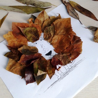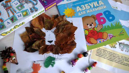 А еще мы из листьев сделали вот такого льва, сыну понравилось. Попросил еще что-нибудь с листьями придумать. А идею в вк увидела.