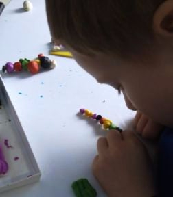 Когда есть время я к нему присоединюсь, стараюсь что-нибудь интересное и необычное предложить ему. Семью гусениц он слепил сам, сказал, что это мама, папа и сын))