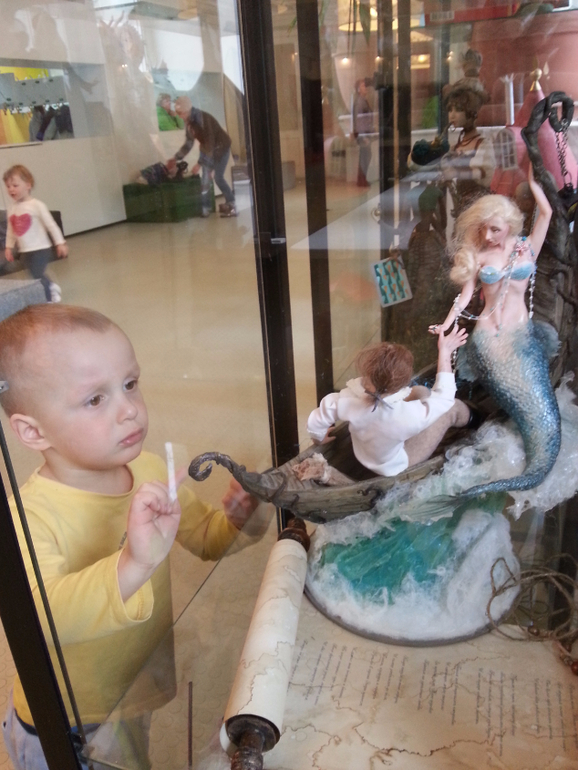 Кроме того, у нас с Димой есть некоторые традиции или правила, которые сохранились еще с моего детства. Перед спектаклем, !обязательно перед!, мы знакомимся с театром: рассматривание здание, обращаем внимание на детали, идем в музей кукол, в туалет, играем в фойе, читаем афиши, рассматриваем вид из окон и т.д. и т.п. Мы впитываем атмосферу!