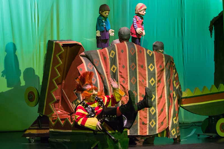 Постановка классическая, динамичная, яркая. Куклы довольно крупные, Мойдодыр вообще в человеческий рост. Так что из середины зала видно прекрасно.