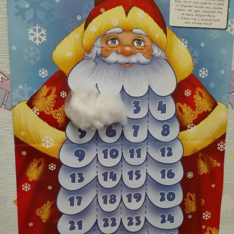 Ещё у нас дома висит плакат, мы к нему бороду приклеиваем. делаем поделки всякие, украшаем квартиру у себя и у бабушки)