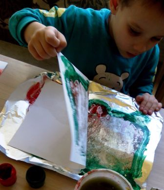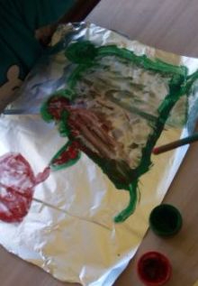 Рисовали на фольге, сын нарисовал машинку, которая везет в прицепе подарки. Этот рисунок мы вложили вместе с письмом Деду Морозу.