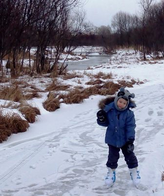 А так же пока у нас каток не залили, мы съездили на речку, покатались на коньках.