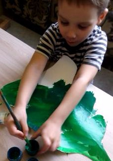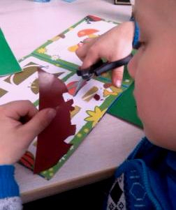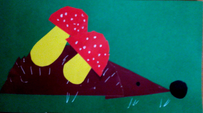 В декабре у нашего дедушки было день рождение, мы для него делали открытку, ежика в технике аппликации по книжке «Простая аппликация». Глеб справился со всеми деталями для подделки практически сам.