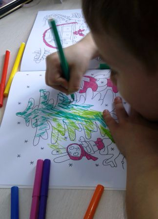 Мне приходит рассылка от школы рисования «LilSchool», я еще пост летом делала о том, как там проходил месяц рисования. Так вот я распечатала новогодние задания, что они прислали. Так сын раскрасил 2 открытки для наших бабушек.