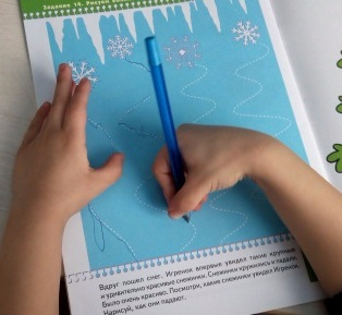 А еще посмотрели, как падают снежинки и потренировались рисовать волнистые линии.