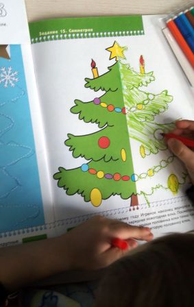 В « от Школы Семи Гномов дорисовали вторую половину елочки, поговорили о том, что они симметричные.