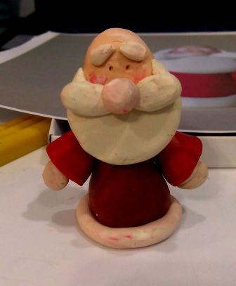 Слепили из пластилина вот такого Дед Мороза, лепила в основном я)) Но сын активно помогал. Лепить он очень любит, и у него все лучше получается.