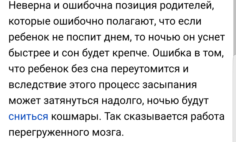И еще я заметила по своим детям, что быстрее засыпают, если активно поиграют перед сном, но тут главное, не передержать, не перевозбудить. Побесятся с папой, например, поскачут на батуте или диване. А после спокойных игр дольше ворочаются. Тут нет единого правила, все разные.