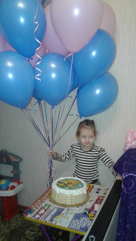 Детские праздники.Вчера моей Аринушке исполнилось 4 г. Она родилась в ночь с 18 на 19 января . Я как такого застолья не делала. Утром мы съездили в активитипарк(там мы были одни ивсё пространство принадлежало только ей). Потом мы сходили в ,,детский мир'' чтобы доча сама выбрала что ей понравится. И она выбрала -2 роботов трансформеров😂😂уговорила ее ещё чтонибудь посмотреть. В итоге выбрала игру ''элефан''(слоник пускает бабочек которых надо ловить сачком). Больше ничего не хотела-устала. Приехав домой мы легли спать. После сна нам привезли шааааарики(25 шт+розочка из шарика). В гости к нам пришла крестная с 2 детками. Торт я готовила сама,заранее заказав вафельную картинку на него.