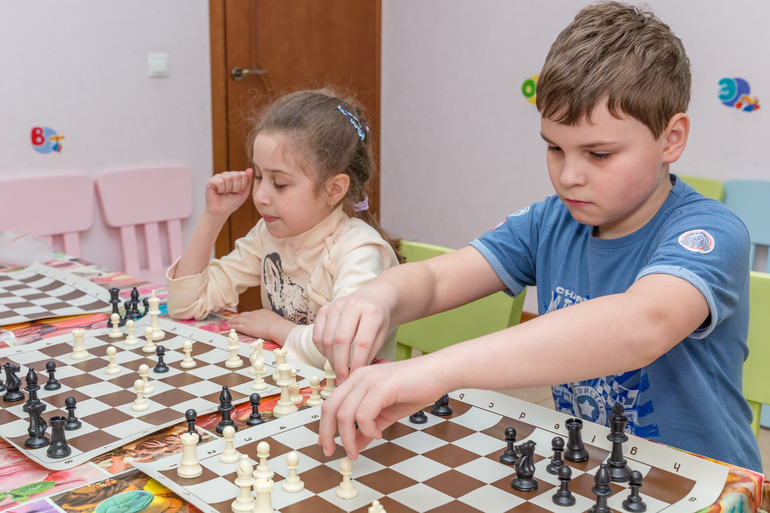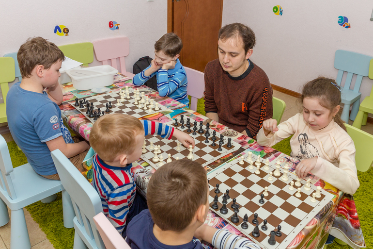 Шестилетний сын играет со мной или в телефоне, стратегии продумать конечно не может, но суть игры и как ходят все фигуры понимает. Младший сын в 3,5 года может расставить почти правильно шахматы и потыкаться в них на телефоне. Научил обоих внуков, ну и меня в детстве мой папа, для меня странно что большинство в окружении в шахматы не играют. Как-то для меня это естественно что ли, как в домино или шашки. Сына думала а шахматы отдать, но пока понимаю, что и так большая нагрузка