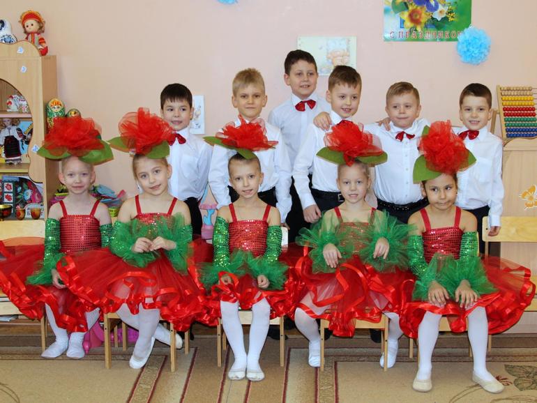 Костюмы шьёт воспитатель), от нас только белые трусики и колготки. Для мальчиков чёрные брюки и рубашки. Если интересно покажу ещё какие костюмы у нас)