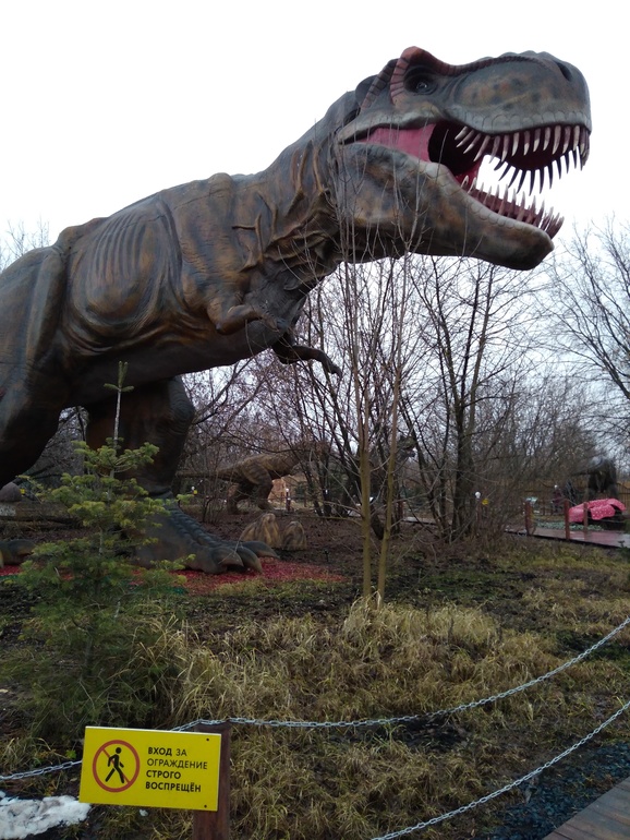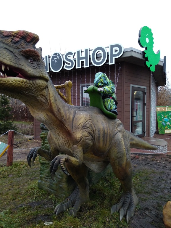 Мы были в парке динозавров, они все с датчиком движения, очень натуралистично выглядят. Около входа два динозавра, на которых можно покататься - они просто "скачут", движение вперед - назад. Мелкому понравилось, старший испугался))). Там есть контактный зоопарк. Енот, пони, козел, козочки, овечки, лисы, ежики, кролики морские свинки, попугай. Дети были в восторге. Всех можно погладить и покормить. Аттракционов много. Открыта была половина из них, но мы почти не катались - там ограничение по возрасту и росту, мелкого не пустили, старший из солидарности тоже отказался. Есть всякие домики Белоснежки, Деда Мороза. Не знаю, что там, мои не пошли. Есть там еще хаски-парк, но у нас дома собака большая и мои тоже не прониклись. В целом день там убить можно легко, но стоит все ооочень прилично