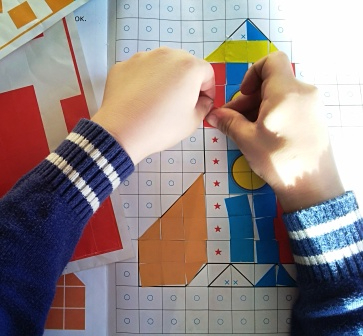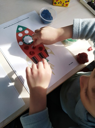 Собрали из наклеек ракету в пособии «Умная Мозайка»