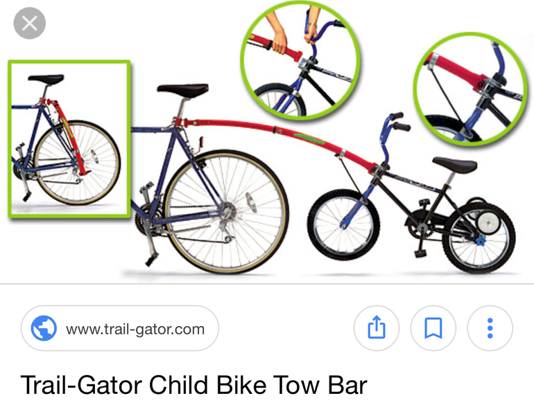 Есть жёсткая сцепка для велосипедов, т.е. Вы как на буксире везёте велик ребёнка, где-то на бб был отзыв