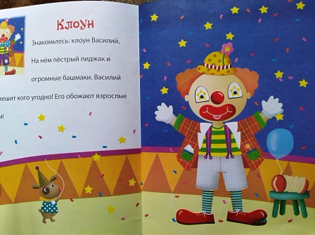 А также почитали о цирке в книжке «Веселый цирк», она с наклейками, что было отличным дополнением для сына, он обожает наклейки.