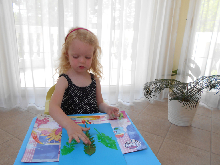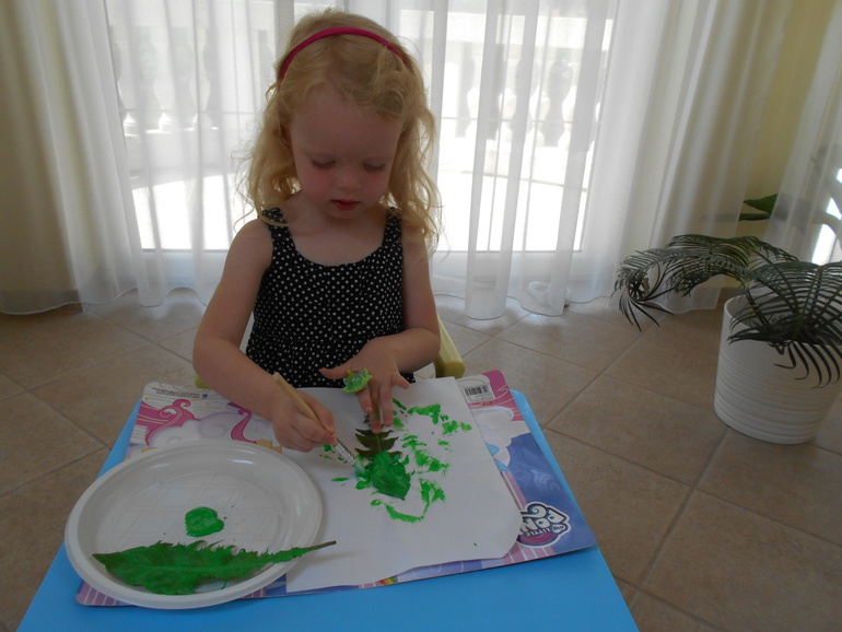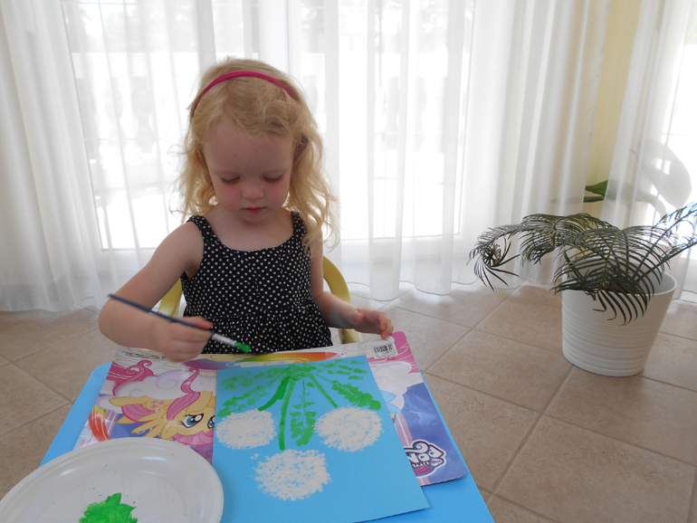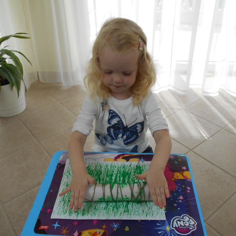 А потом решили нарисовать свои, используя не совсем обычные инструмены. Траву мы рисовали с помощью рулона от бумажного полотенца, на котором закрепили бечевку