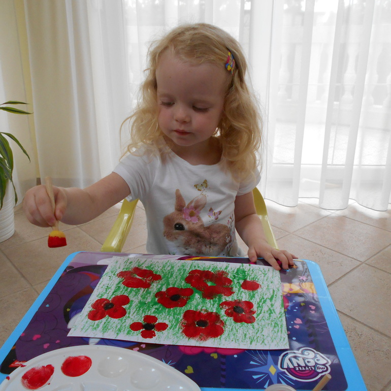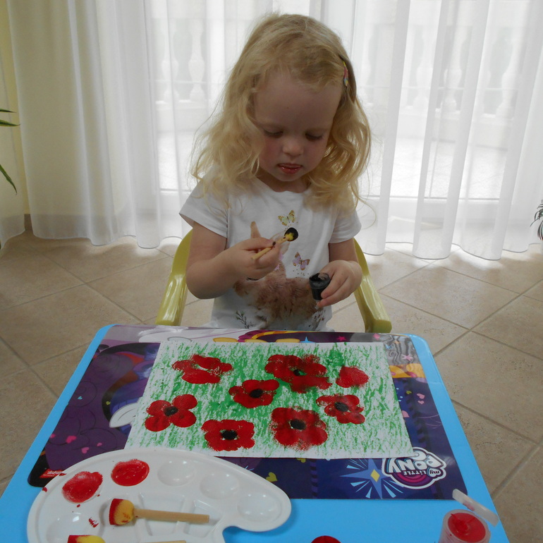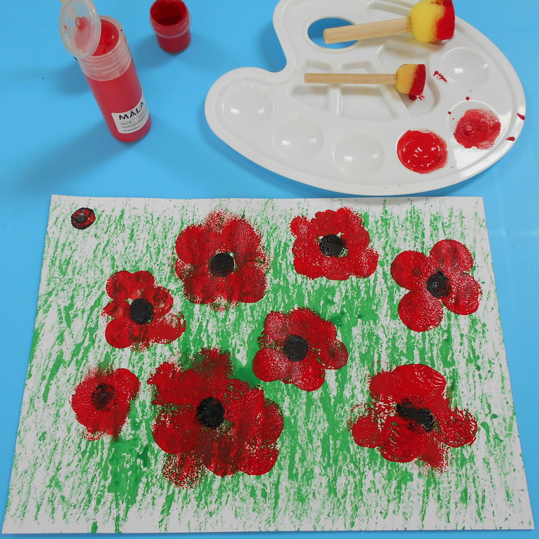 маки рисовали с помощью поролоновой кисти