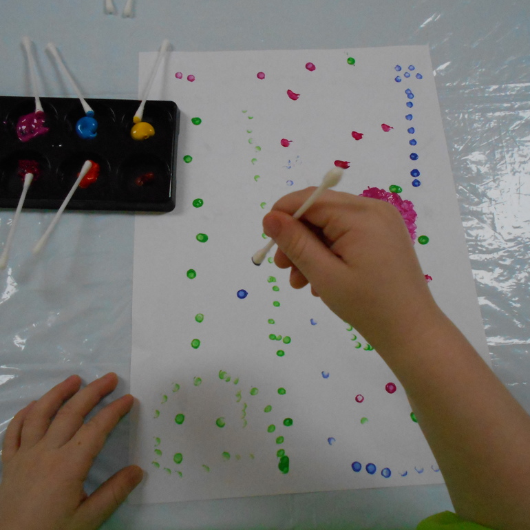 Одним листом рисование не закончилось и я этому очень рада. При создании другой абстракции Грета не только ставила точки, но и чертила линии