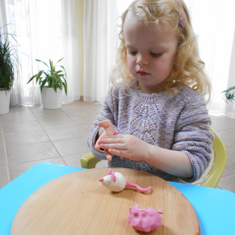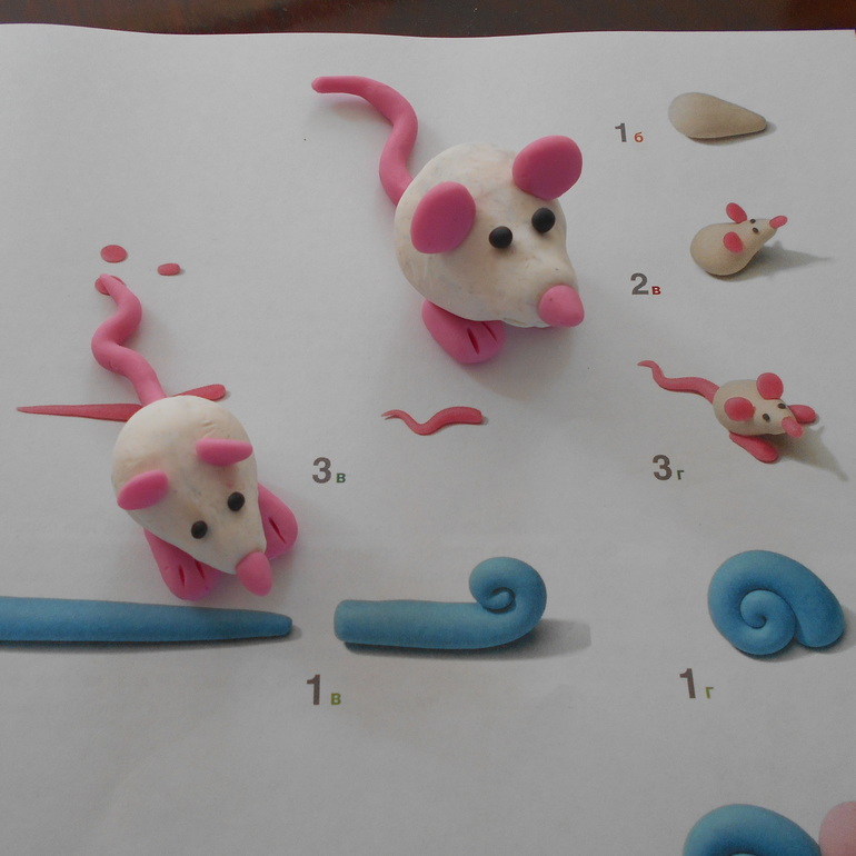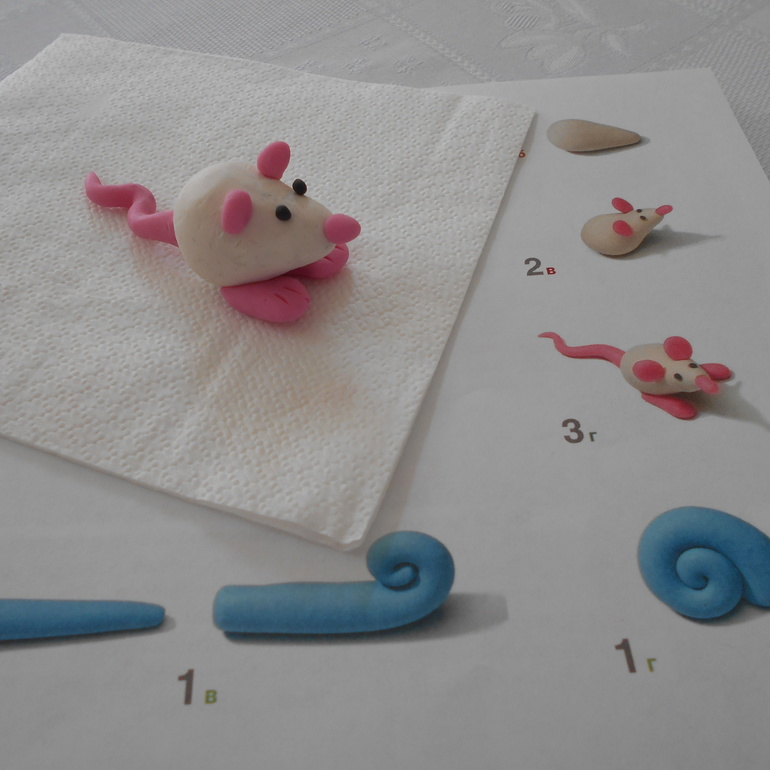 Иногда удается заинтересовать Грету, когда что-то начинаю лепить сама. Я скульптор, впрочем как и художник, еще тот. Никогда ничего до этого не лепила или в детстве, может, и лепила, но уже не помню, ярких воспоминаний об этом не осталось. В этом плане Марине Озеровой О детском рисовании повезло больше, у ее птицы только лапы выглядели ненатурально, у меня все было ненатурально. Мне помогает книга Рони Орен: Секреты пластилина или нахожу интересные идеи в Интернете. Всегда нужно с чего-то начать. Вот мы, вернее я, и начала с мышки