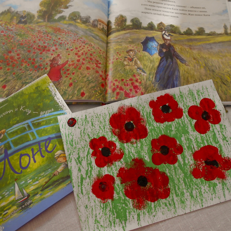 Благодаря двум замечательным книгам Джеймс Мейхью: Кати и импрессионисты и Анна Обиолс: Моне. Филипп и Клод - друзья мы продолжили приоткрывать для себя мир искусства и познакомились с Клодом Моне и одной из его известных картин «Маки» или «Поле маков у Аржантёя»