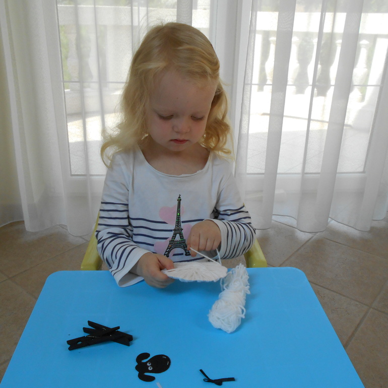 Усовершенствовать мелкую моторику можно и с помощью фигурок забавных животных. Мы делали вот таких овечек. Идею увидела на Pinterest.com