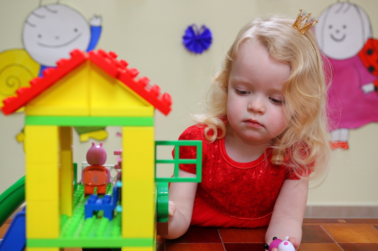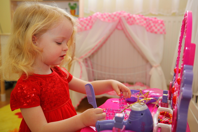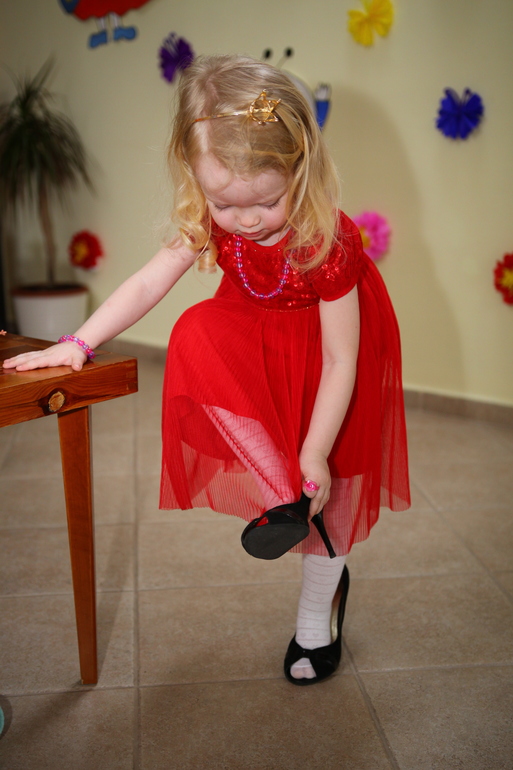 Грета, наверное, как и все маленькие девочки, обожает примерять мамину обувь, особенно на высоком каблуке. Вот и сейчас не обошлось без примерки маминых туфель