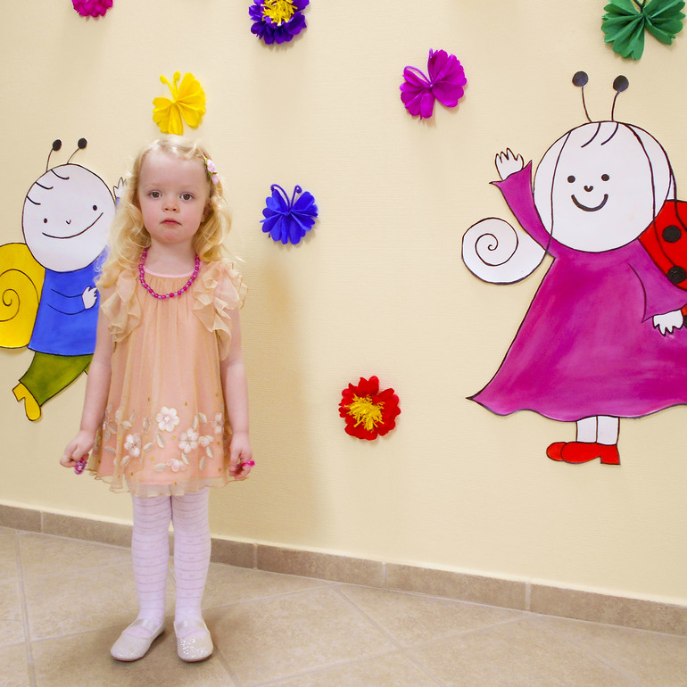Для фотосессии выбрали несколько элегантных праздничных платьев. Была у меня мысль нарядить Грету в костюм божьей коровки или бабочки, но дочка решительно отказалась от этой идеи, твердо заявив: "Мама, только элегантное платье"