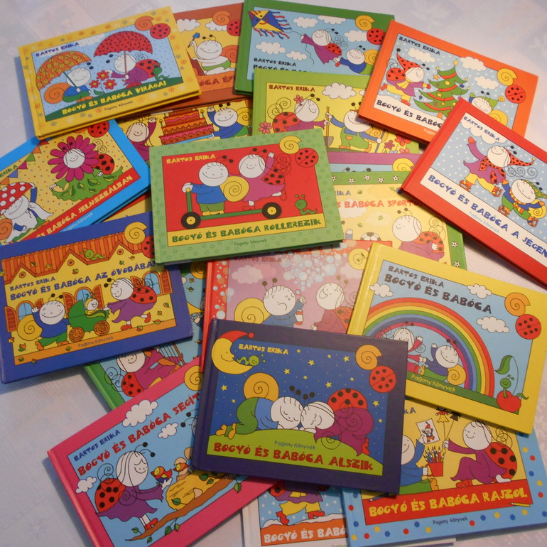 Подготовка к празднованию дня рождения дочки началась практически сразу после новогодних праздников. Найти, заказать/купить, привезти, вырезать, склеить и т.д. Идея оформления давно вертелась в моей голове. Вернее Грета и ее любимые герои книг/мультфильмов сами ее подсказали. "Венгерские" мамы меня поймут. Этих героев любят практически все венгерские дети, начиная чуть ли не с рождения. Да, это Bogyó (Бодьо) улитка и Babóca (Бабоца) божья коровка, истории о которых придумала венгерская писательница Бартош Эрика. По мотивам ее книг был снят и мультсериал. Главные герои книг улитка-мальчик, божья коровка-девочка и их друзья пчела, бабочка, стрекоза, шмель, муравьи, другие жучки-паучки. Сказать, что Грета обожает этих милых существ - это не сказать ничего. С книжек об этих добрых насекомых, похожих на маленьких человечков, начинается и заканчивается ее день. Почти каждый вечер Грета выбирает одну из книжек, которую папа почитает на венгерском, хотя знает их все почти наизусть. Первую книгу нам подарили, когда Грете было чуть больше года. С тех пор наша коллекция значительно пополнилась. Сейчас их около двадцати.