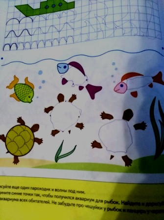 Морскую тему мы поддержали так же в рабочей тетради «Прописи для дошкольников» мы обводили краба, морскую звезду и тд. Посмотрите как аккуратно уже у него получается, определенно есть результат от наших занятий.