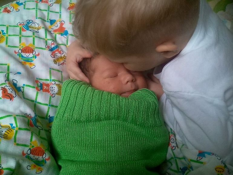 Новорожденный... вокруг шум, гам, новые машинки, те которые подарил новый братик. Даниилка первым делом заглянул в конверт и сказал: Какой он милый и красивый! Да и это правда, он просто ангел. Брату хотелось заглянуть, потрогать его, показать игрушки, но малыш спал, как жаль, что с ним не поиграть. Иван был немного расстроен,наверное он понимал, что жизнь измениться из-за этого сопущего комочка, больше ответственности ляжет на него. Да и не легко быть старшим братом, ведь он пример. А кто знает Ваню , тот понимает сколько сил ему нужно приложить, чтобы быть внимательным, тихим и при этом спокойным. Ведь двое носящихся мальчишек по дому = шишки, выбитые зубы, синяки, море слёз, разбитые, сломанные игрушки. Как бы не было они очень любят друг друга, надеюсь со временем они вырастут отличными, заботливыми, помогающими братьями.