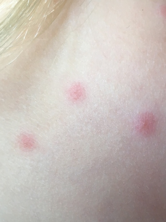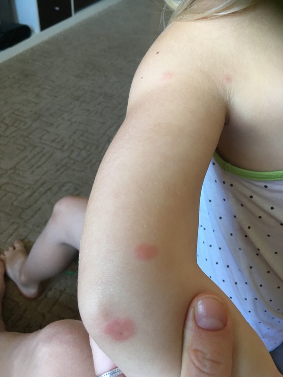 Доча сегодня проснулась вот с такой бякой на щёчке и локте... температуры нет, горлышко возможно немного красное, ветрянкой болела, аллергенов сильных не ела, немного картошки в бергеркинге похватала, но я раз в 3 месяца разрешаю... что это вообще может быть?((( к врачу завтра пойдём...