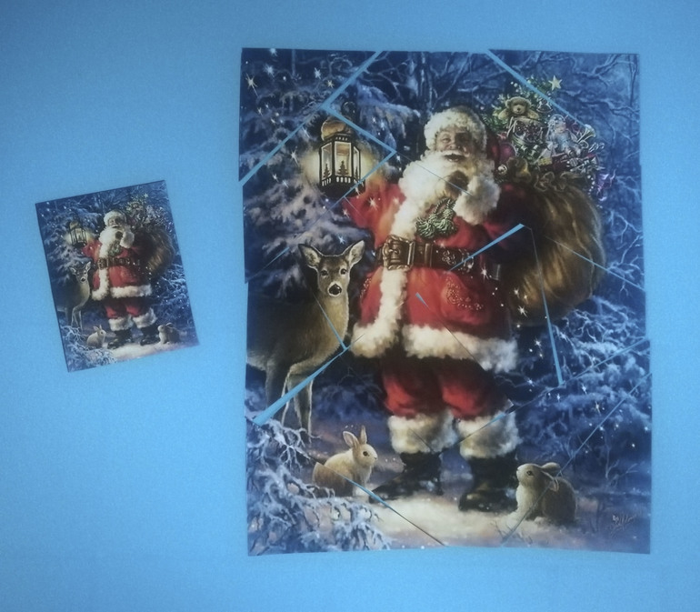 Еще помогли собрать 2 "картины из стекла", которые ему подарил белый медведь Бальбо, а кто-то шалил в доме Санты и случайно их разбил