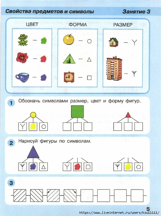 Вот, сверху- цвет, форма и размер, обозначаются символами ( или отрицаются зачеркиванием)
