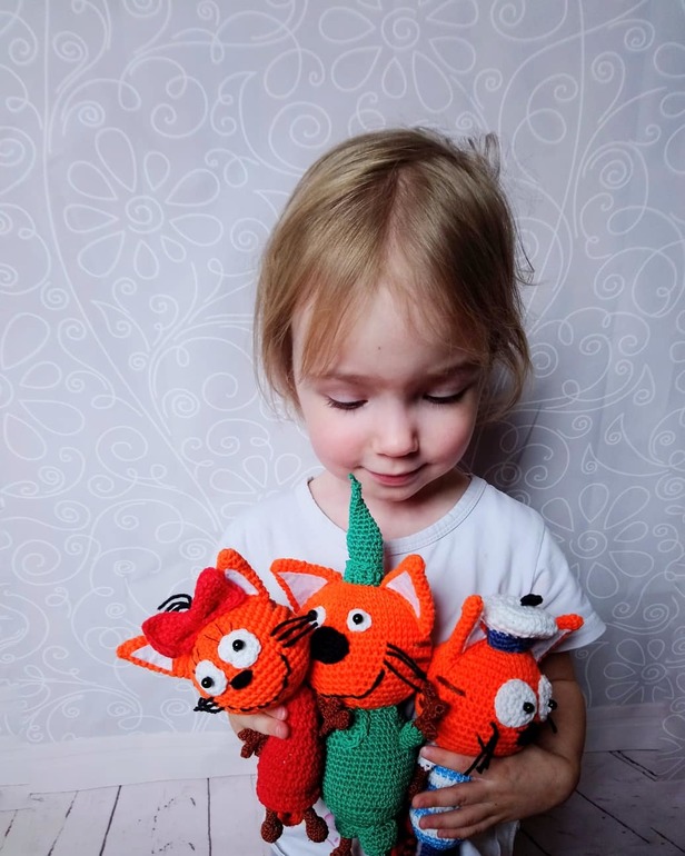 Потом дочка стала просить ещё маму и папу, а я была не в силах их вязать в тот момент, и стала смотреть в интернете... Оказывается мягкие игрушки в интернете так себе, вязаные намнооого приятнее и красивее, что называется сделано с любовью 🧡 короче нашла дешёвый набор и заказала, счастья полные штаны 😊у всех 🤭 фигурки китайские наверное, хвосты у некоторых отваливаются, но потом вставляются на место) за 1000 р детям пойдёт)