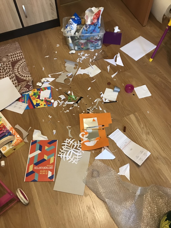 Она может вырезать, клеить, красить и ей нравится.