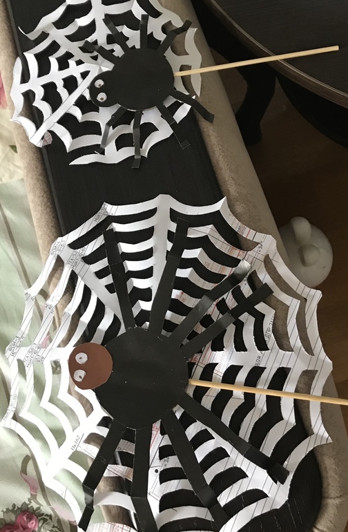 Сделали паучков на палочках и к ним паутинку пришлось вырезать)