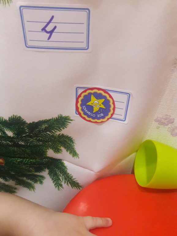 После этого Аня получила наклейку, правда сказала, что звёздочка ей не нравится, я обещала, что завтра выберет сама