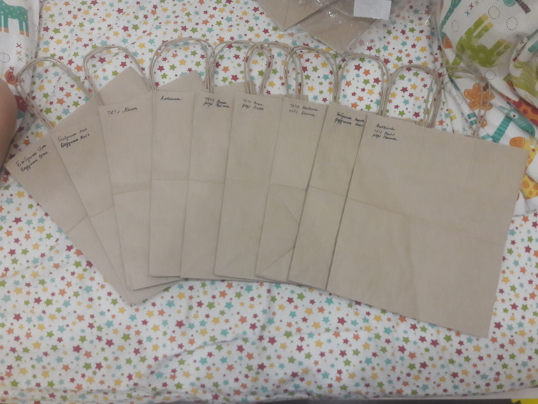 Пока Ваня рассматривал и проьовал на зуб наклейки, мы с Аней подписали пакеты