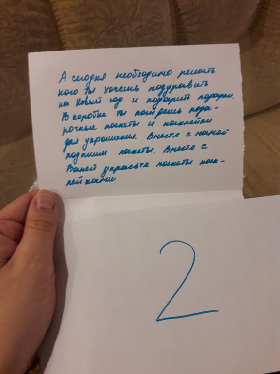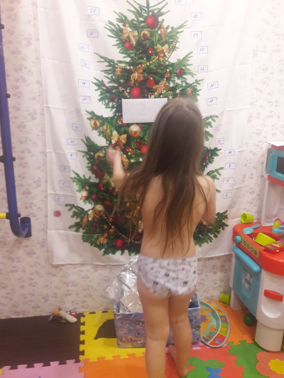 Утром Аня увидела новый конверт на ёлке и прибежала ко мне с вопросом когда я повесила циферку 2: вчера вечером или сегодня утром. Сказала, что ёлочка волшебная и сама дала конвертик (т.к. у мамы можно выпросить новые задания раньше, а у ёлочки нельзя😉).