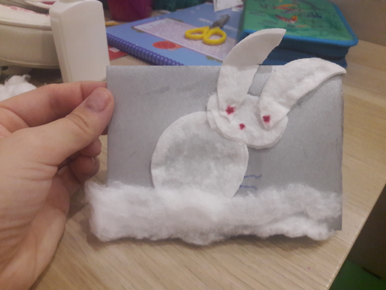 И Аня села опять вырезать снежинки (мы вчера весь день этим занимались). Предложила ей ещё открытку сделать, но она отказалась.