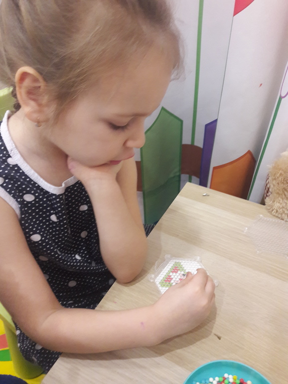 Аня очень любила аквамозайку - часто её делала, поэтому я была уверенна, что задание ей понравится. Но, видимо, ей надоела она уже. Сначала она взялась с энтузиазмом