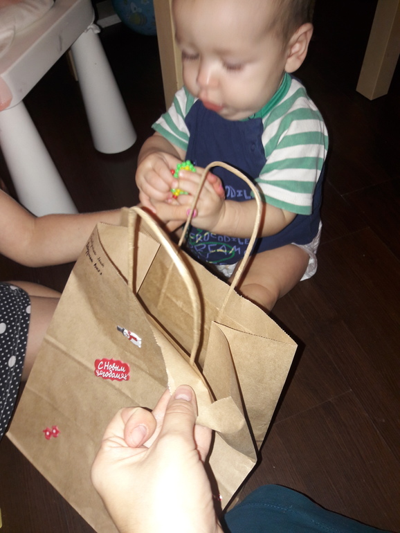 Первые 2 положили нормально, а потом он стал тащить их в рот и возмущаться, что не дают - пришлось расскладывать без него.