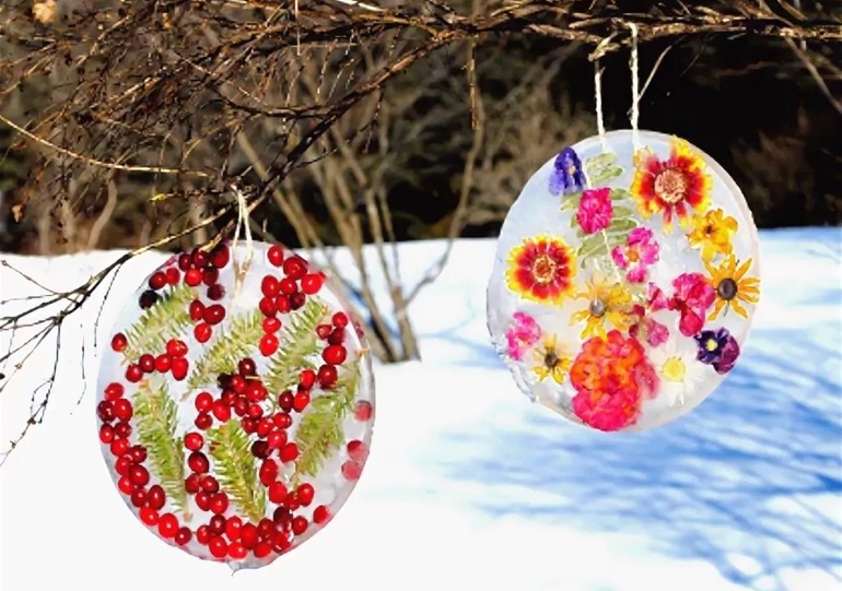Будем делать ледяные украшения (надеюсь, к тому времени на улице уже будет мороз, чтобы вынести их во двор)