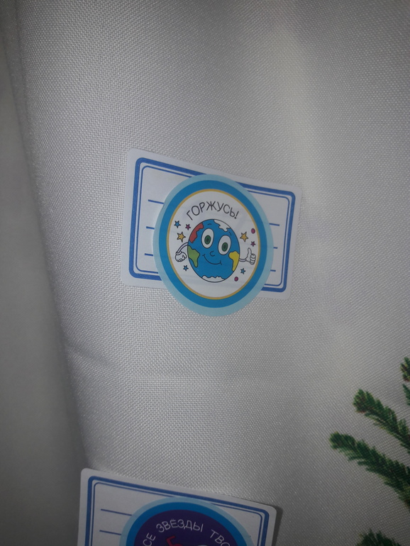 Самое сложное было - отвлекать Ваню - ему очееь хотелось "помочь" сестре. Открытку в подарочный пакет положили и я выбрала наклейку