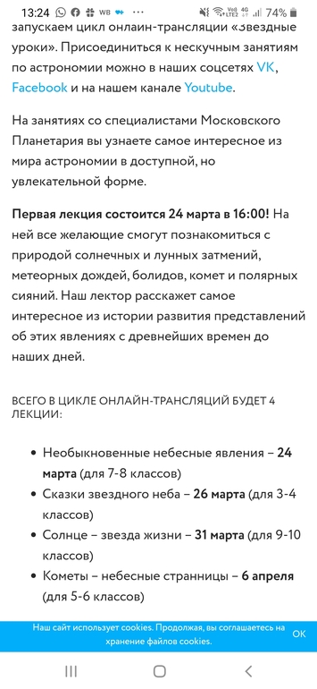 ЦИКЛ ОНЛАЙН-ТРАНСЛЯЦИЙ «ЗВЕЗДНЫЕ УРОКИ» (Московский Планетарий)