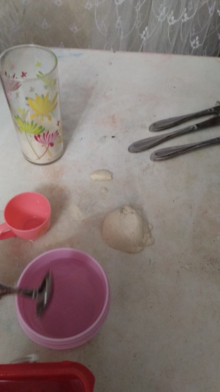Купила ей цветное тесто для лепки. Ну полепила чуть-чуть, а потом: "мама, дай мне лучше муки и воды, будем лепить". Ну там не мука, а манка.