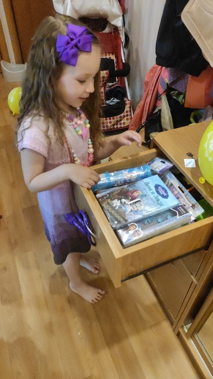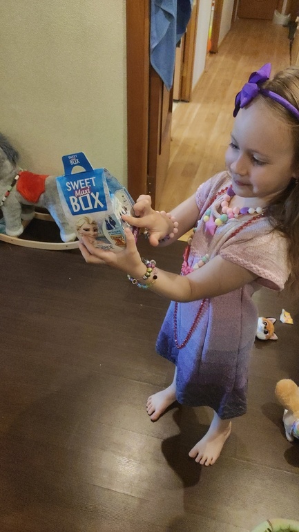 О квесте поподробнее. После мультика я дала ей sweet box с холодным сердцем (этот мультик она очень любит), в котором было письмо о том, что Анна и Эльза узнали об Анином дне рождении, подготовили подарок, но спрятали его.