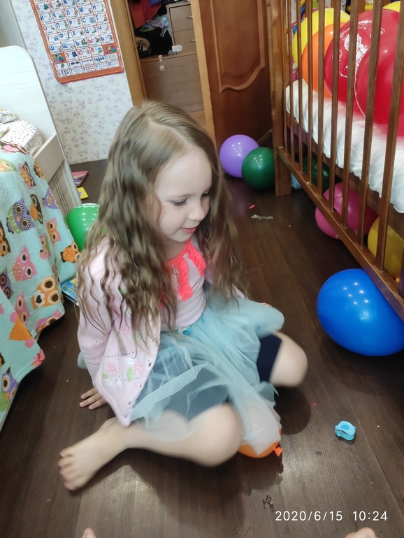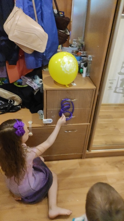 После этого квеста мы стали лопать оставшиеся шарики в поисках наклеек, я научила лопать шарики попой, Ваня присоединился.