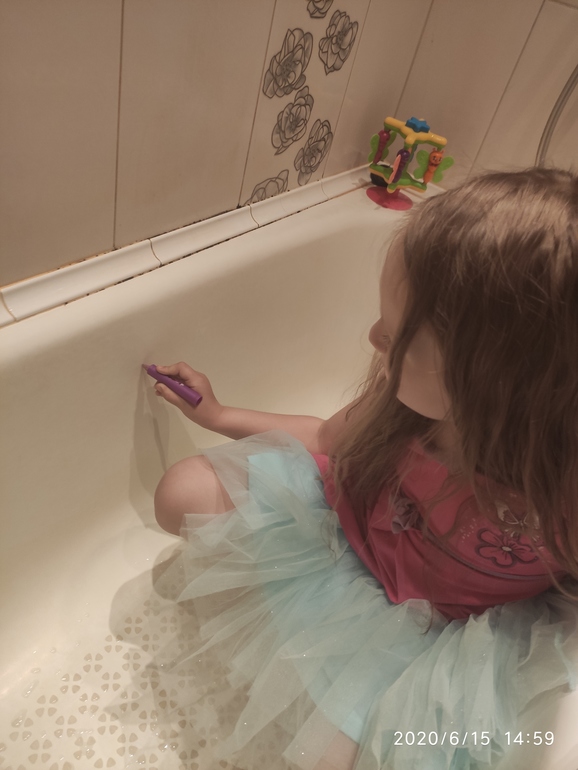 Ещё немного почитали и пошли мыть детей - купались вместе, рисовали мелками, даже не капризничали, хотя и устали. В 21:10 оба уже спали.